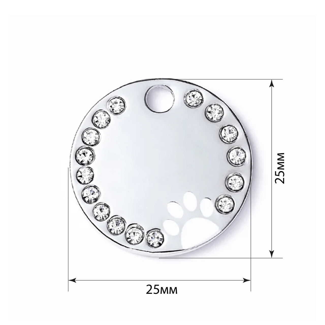Dog Tag Circle Paw White 25x25mm